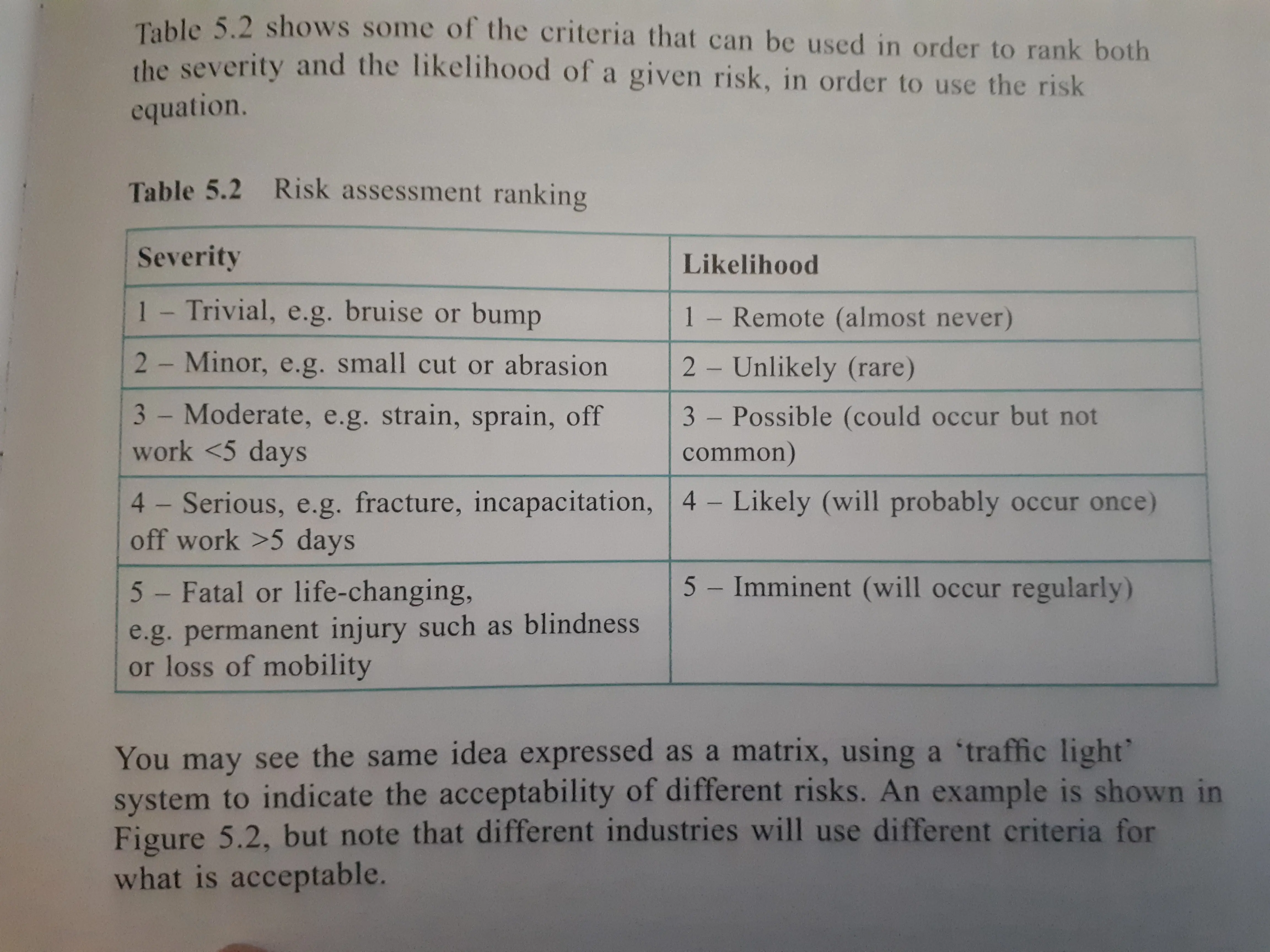 A common way to use this equation is to rank both severity and likelihood on a scale of 1 to 5, and to set thresholds for action based on the result.