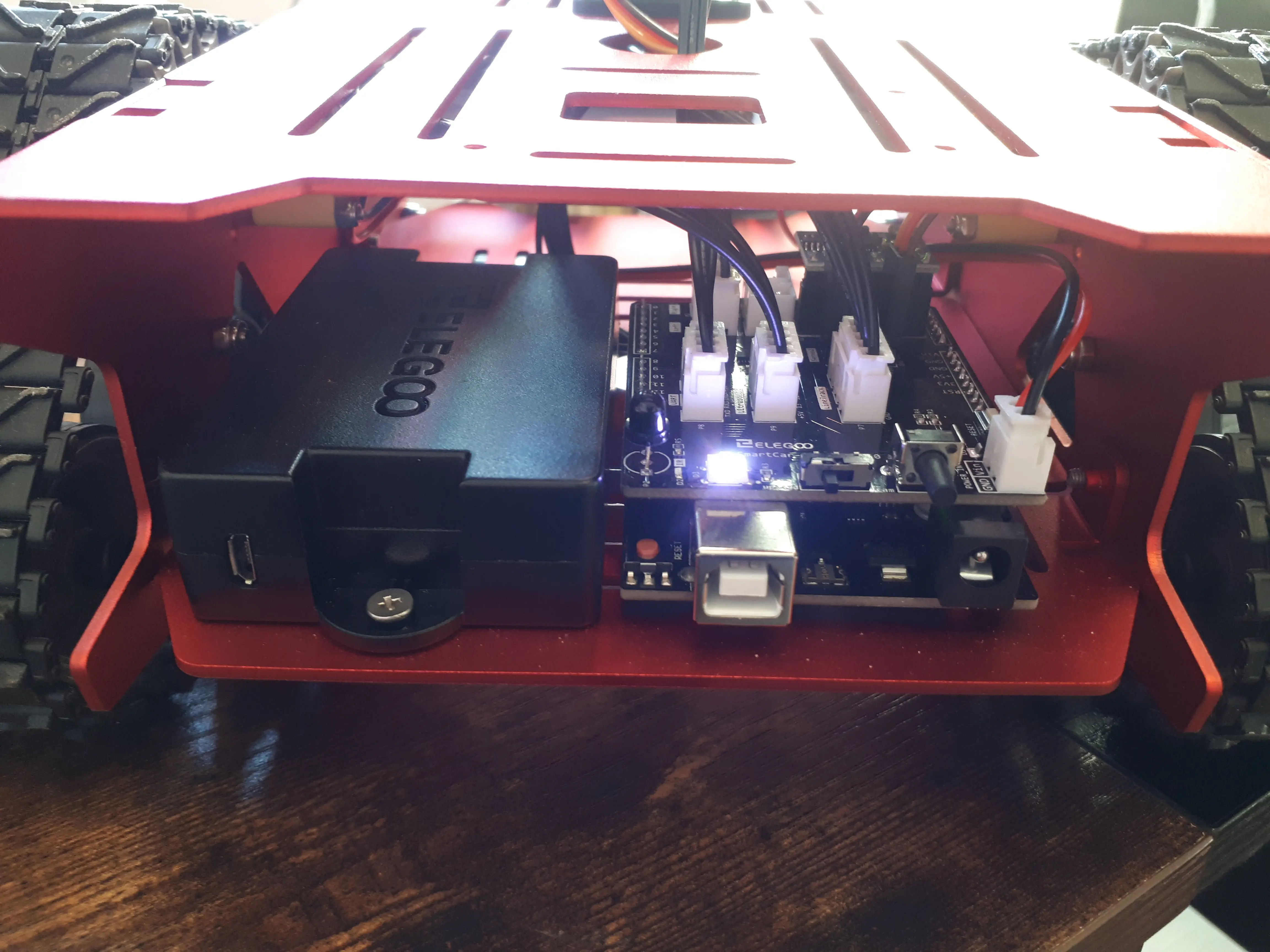 Here is a tracked robot controlled by an R3 control board and comes with factory uploaded programs such as obstacle avoidance mode. It has a camera mounted on a dual axis gimbal mount and can be operated by an infrared controller or mobile app, this means it can be remote controlled using the camera. The best bit is that you can write and upload your own programs to the board to control the robot which will be a good learning experience to see your programs working on a physical machine.