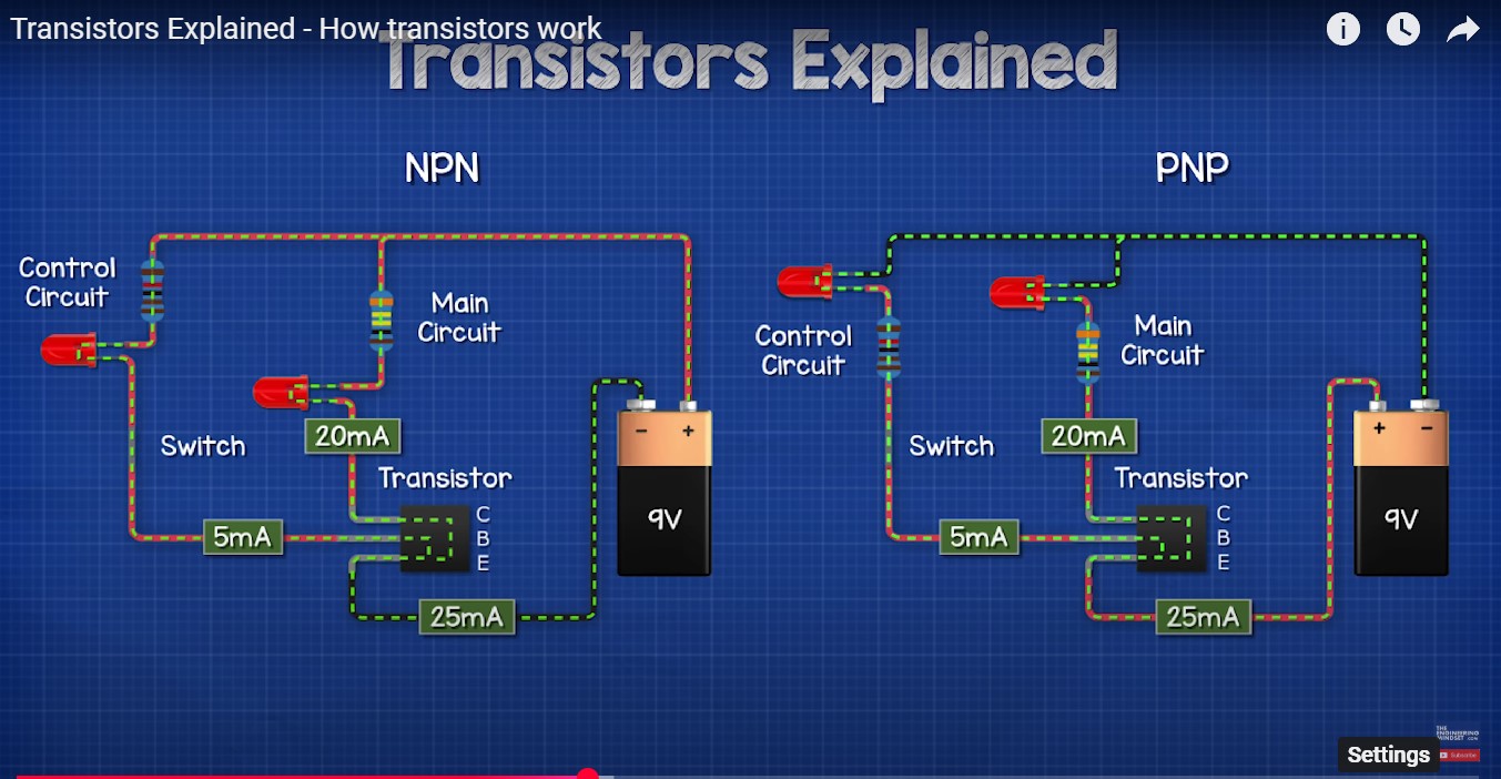 - Note that BJT transistors always require a current limiting resistor connected to their base.