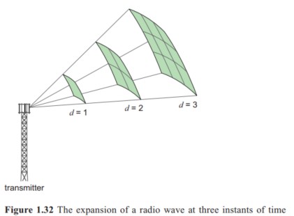 The inverse square law describes the reduction in power with distance from the transmitter, due to spreading.
