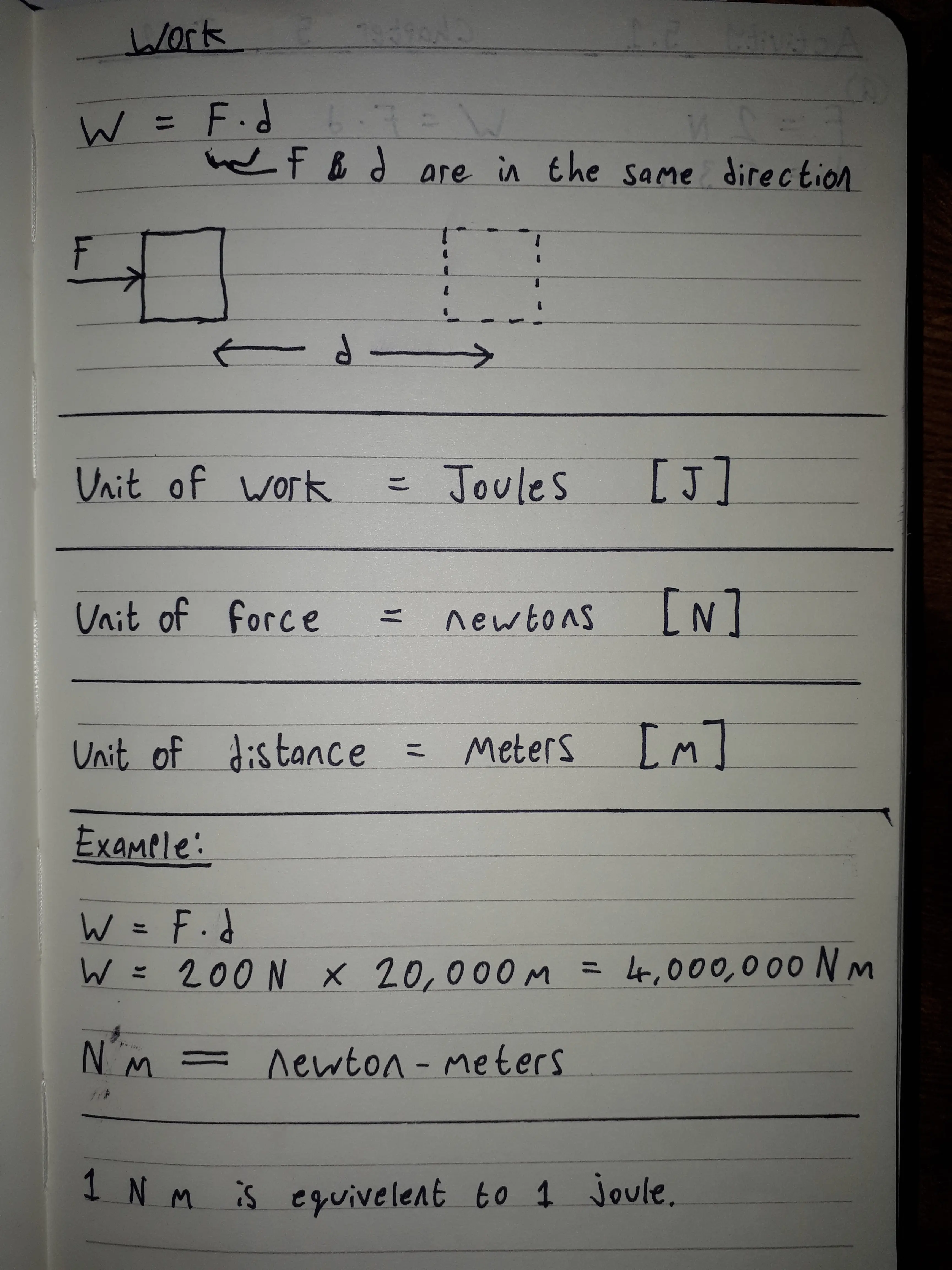 ‘Work is done when a force moves a body through a distance in the direction of the force’