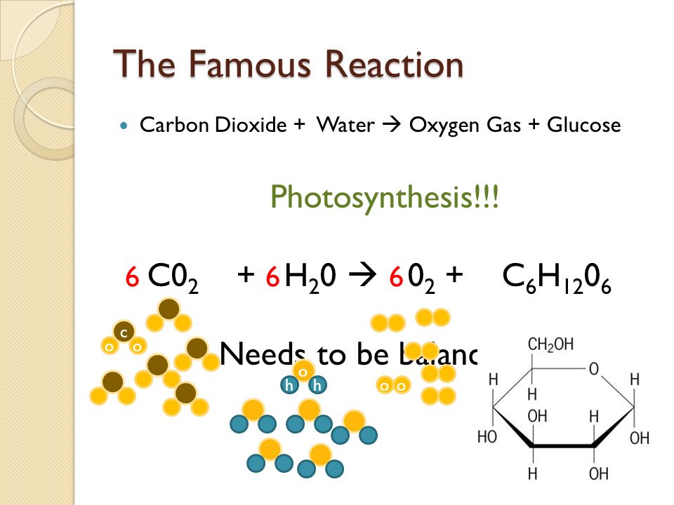 (one methane molecule reacts with two oxygen molecules to produce one carbon dioxide molecule and two water molecules)