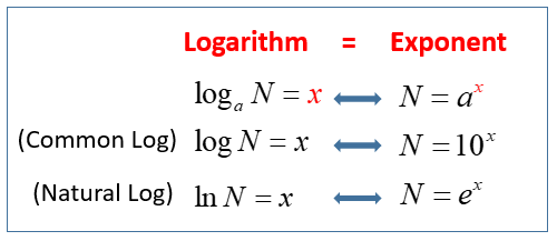 The natural logarithm of a number x is the power to which e has to be raised to obtain x.