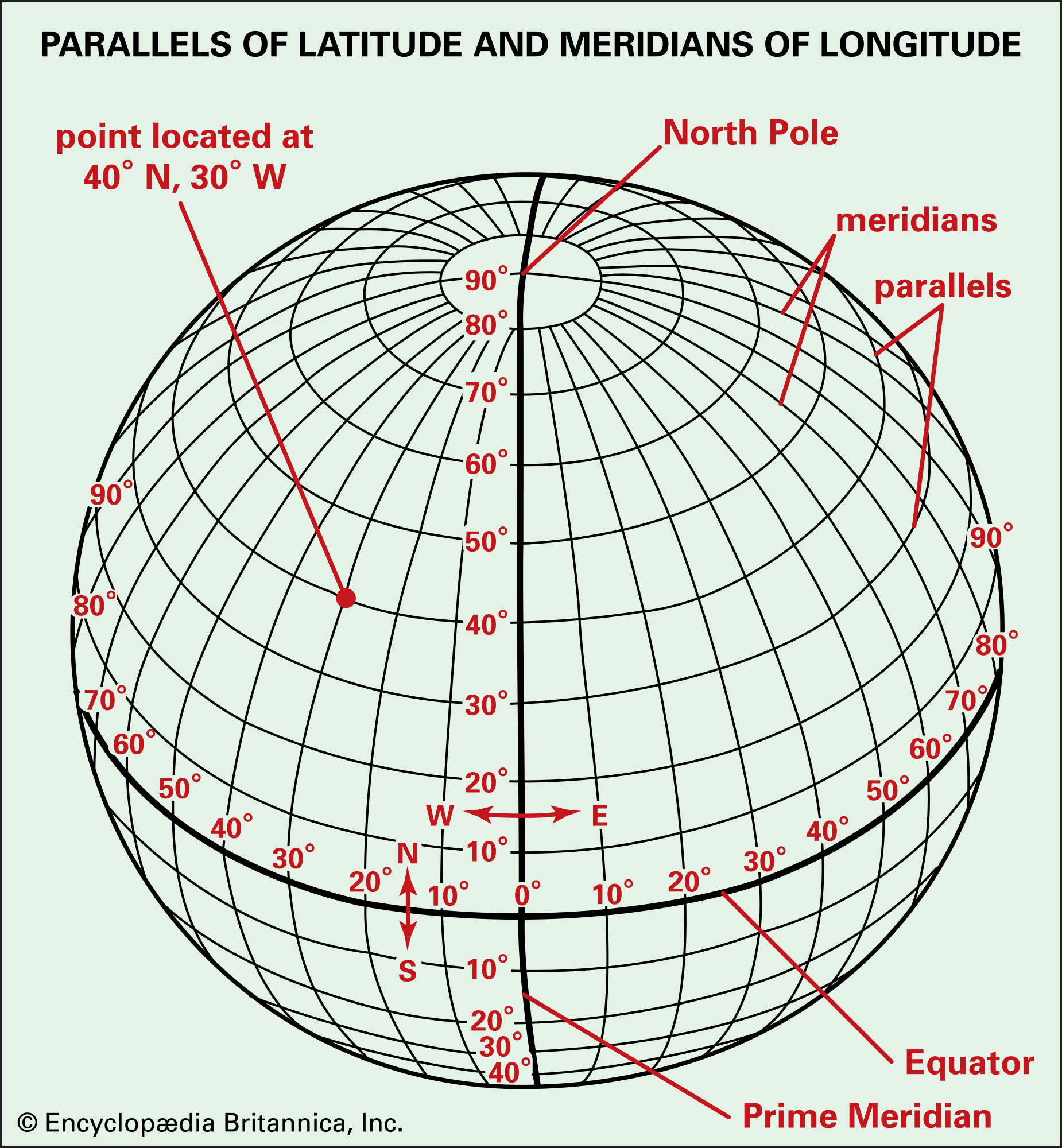Longitude (meridians) = Pole to pole