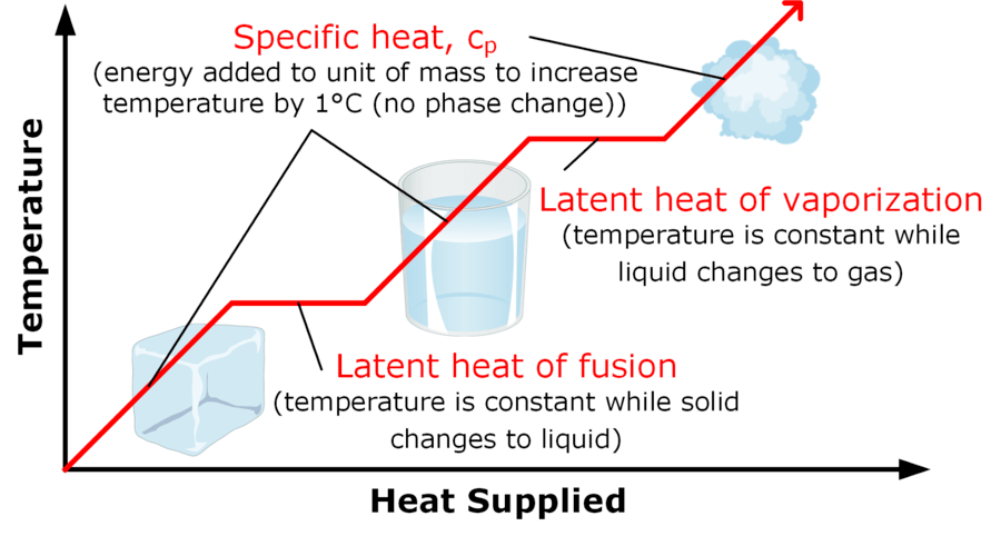 - Specific latent heat of fusion (or vaporisation), Lf, or: Lv, (kJ kg-1)