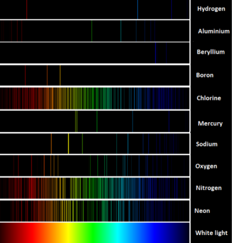 - By comparing known elements emission spectra to the absorption spectra viewed in the telescope from the distant light, individual elements can be identified from great distances