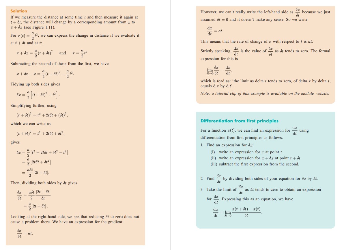 For a function x(t), we can find an expression for dx/dt by following these steps;