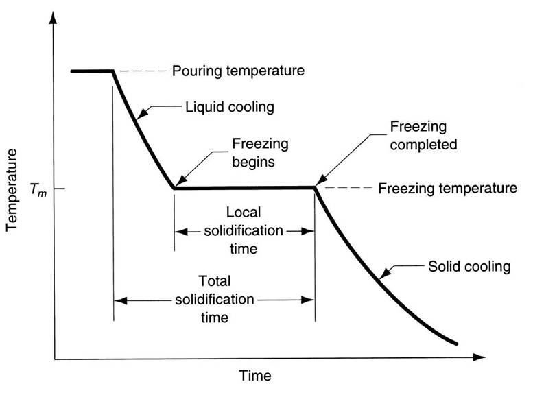 kM, pM and cM are the thermal conductivity, density and secific heat capacity of the mould material (e.g. sand) respectively.