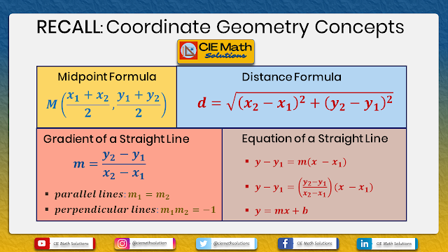 - Midpoint of AB = (x, y); x = ((x1 + x2) / 2) &: y = ((y1 + y2) / 2)