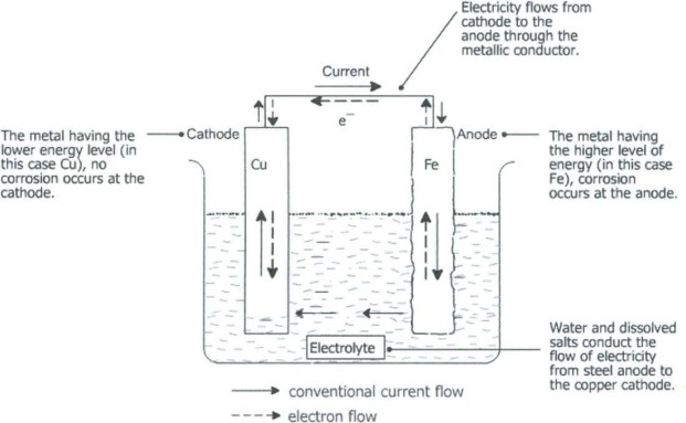 A battery cell works by connecting two conducting electrodes via an electrolytic solution.