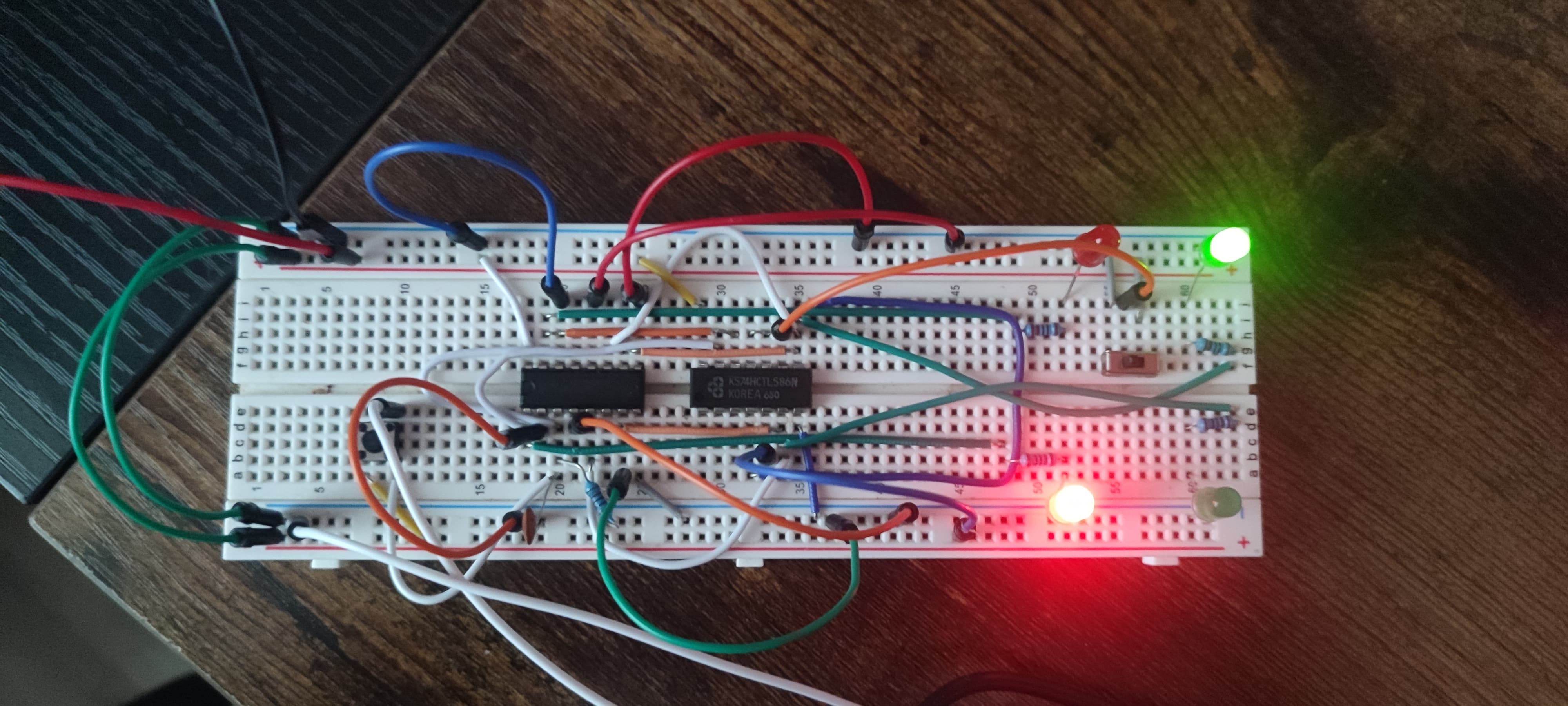 In the project, the automated clock input was replaced by a push button switch connected to the supply rail.